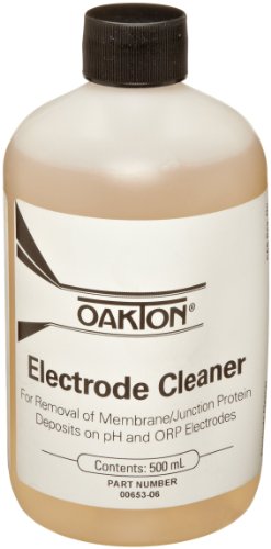 The Oakton 00653-06, 1-pint (550-mL) pH/ORP electrode cleaning solution is to remove build-up from electrodes to maintain bulb sensitivity. A cleaning solution is used to clean probes for accuracy in testing liquids in lab and field applications. This liquid solution is to keep the probe bulb in proper working condition for quick readings. It comes in PEGC-bottle packaging to improve shelf-life, and is manufactured according to the APHA and ASTM formulation for more accurate readings.